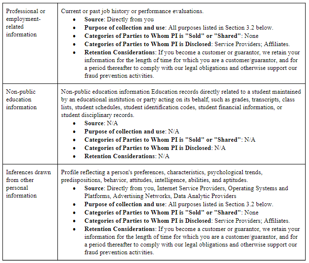 Please note that if you are a customer or prospective customer, we only collect sensitive personal information in the context of our provision of financial services. Such sensitive personal information is not subject to CCPAs access or deletion provisions.